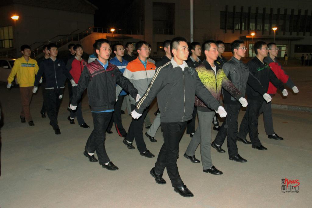 国旗护卫队队员利用夜晚的时间抓紧训练 (李晖 摄)