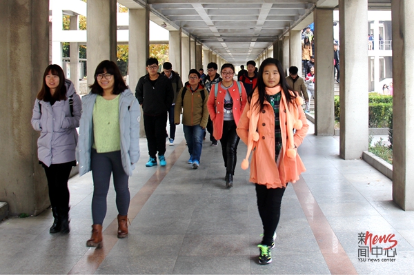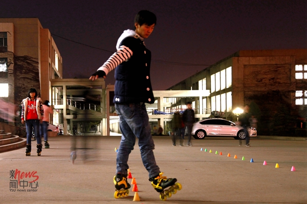 20:00 青春活力满溢的身影游弋在图书馆前(曲宝蕾/摄)