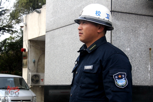 16:00 门卫师傅坚守在自己岗位上(邓可星/摄)