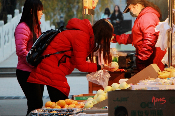 19:00 路边的水果摊迎接着一个个熟悉的面孔(解丽萍/摄)