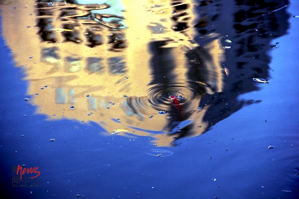 17:00 燕鸣湖里的小金鱼亲吻了世纪楼的倒影(韩胜男/摄)