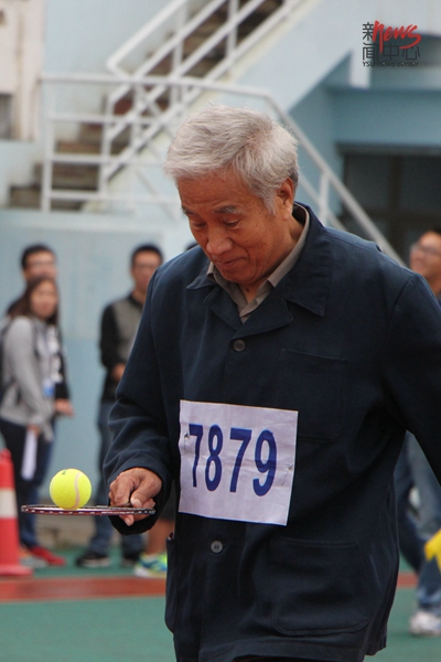 离退教工房延龄参加托球跑比赛(毕佳畅/摄)