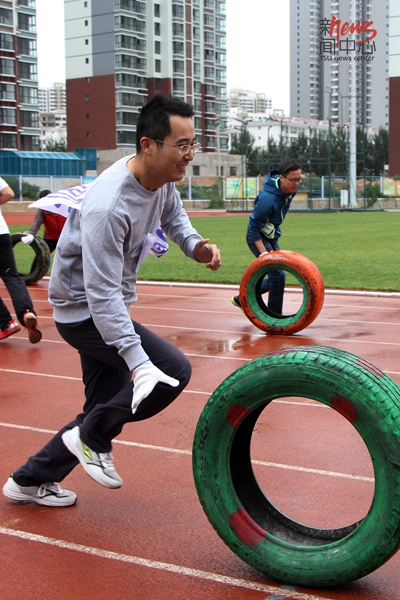 趣味项目推轮胎正在进行中(毕佳畅/摄)
