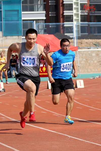 里仁教工常鑫教工男子甲组100米决赛(蔡巧怡/摄)