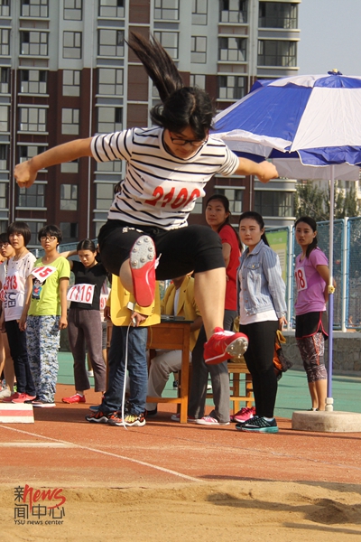 信息学院赵珊珊在三级跳比赛现场(付心怡/摄)