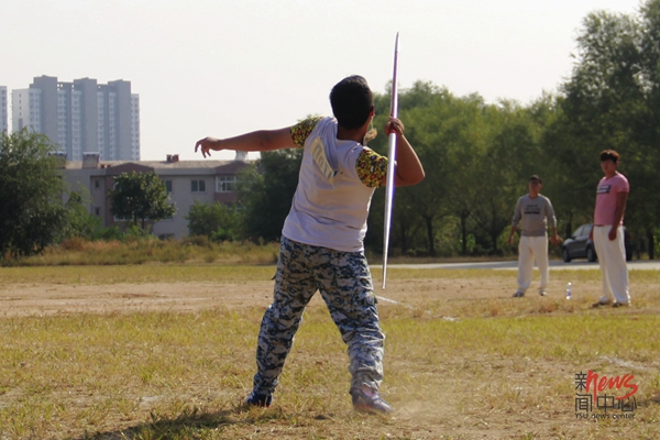 机械学院杨宁同学在投掷标枪(屈升/摄)