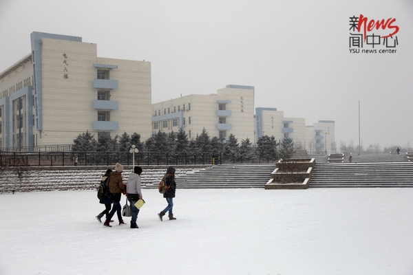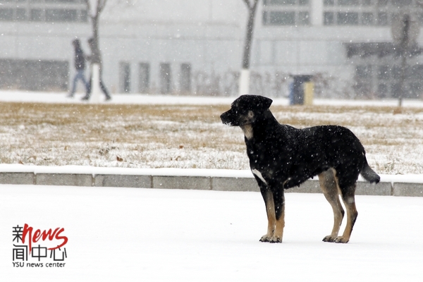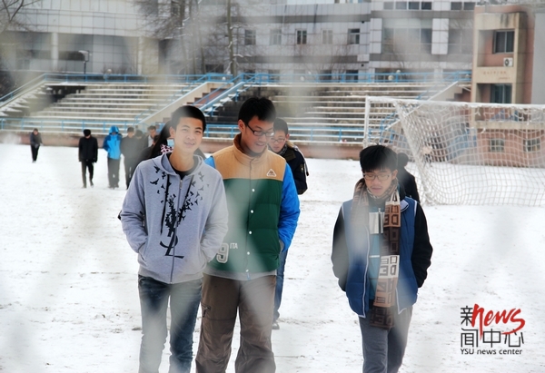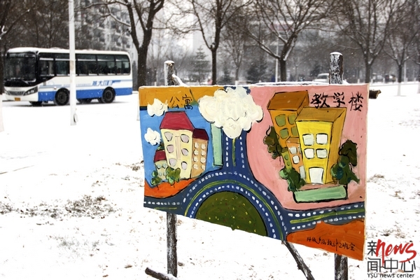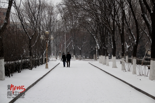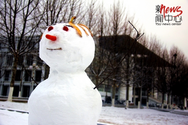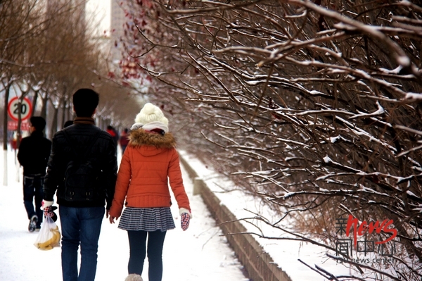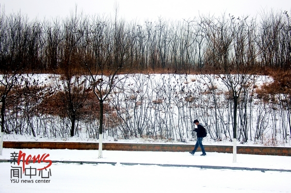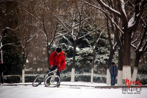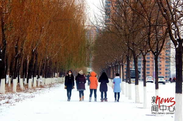 初雪的色调因为燕大的学子们而变得多彩(刘越/摄)