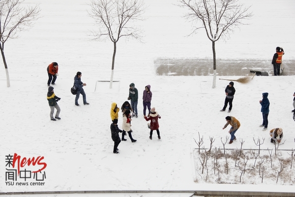 2014年12月7日恰是中国二十四节气中的“大雪”,在这一天,今冬的第一场雪应着节气降临秦皇岛。美丽的燕大校园在皑皑白雪的覆盖下,俨然变成了一幅淡淡的水墨画,燕大的学子们走到户外赏雪景、打雪仗、堆雪人,新闻中心的记者们外出拍下了这些生动的照片,记录了第一场雪带给燕大的惊喜。