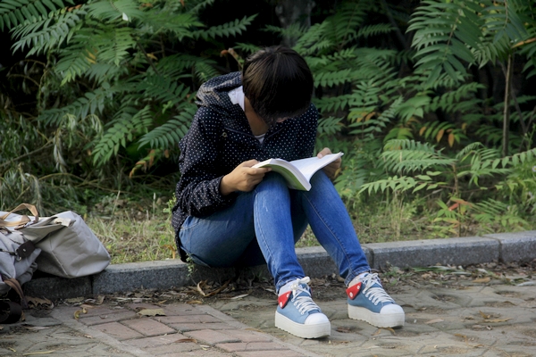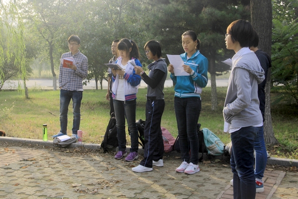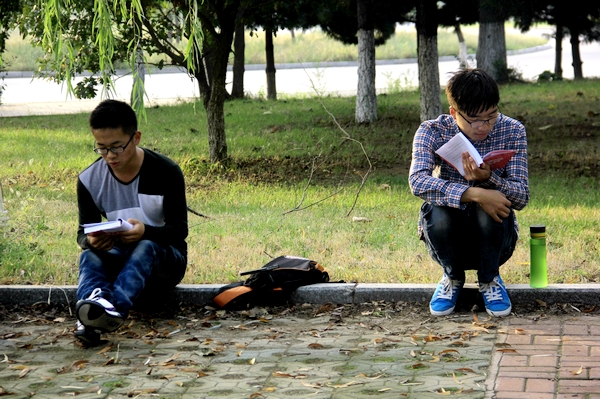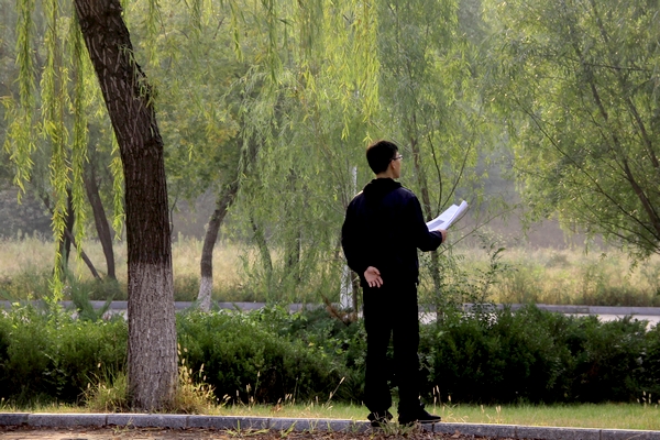 “读书辄成诵”·9月26日早7:00·西区四教旁(付心怡/摄)