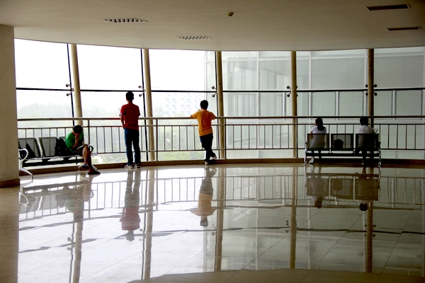 “人求上进先读书”·2014年6月10日7:00·西区里仁教学楼(许泽宽/摄)