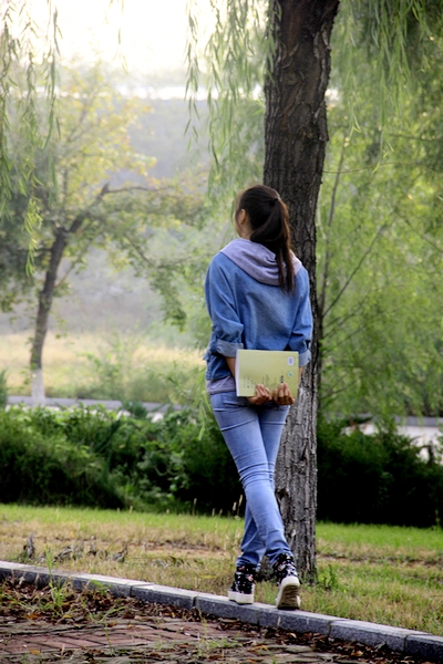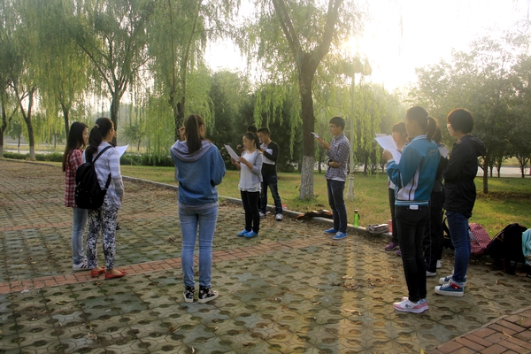 “卷袖执书心朝阳”·9月26日早7:00·西区四教旁(付心怡/摄)