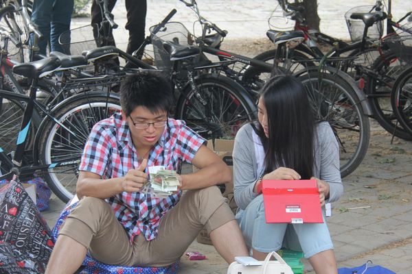 因为大四一条街上交易的商品价格低廉,毕业生们收到的钱面值都很小