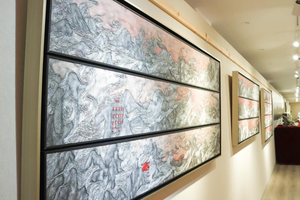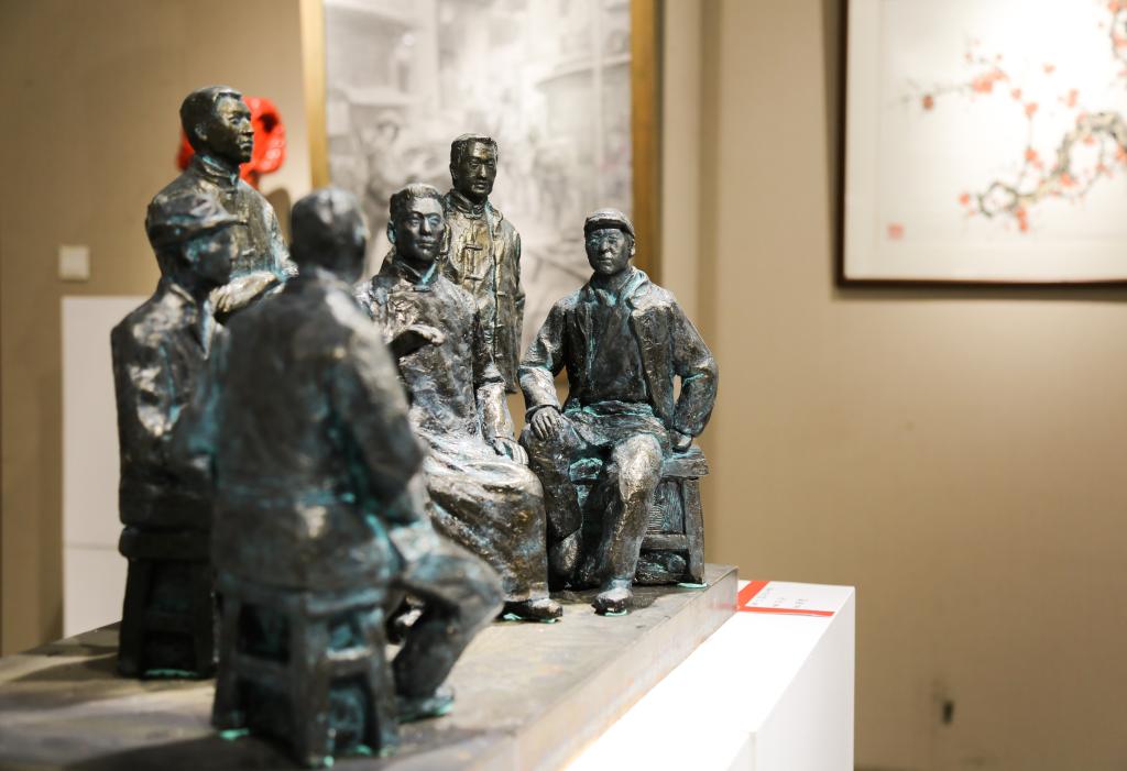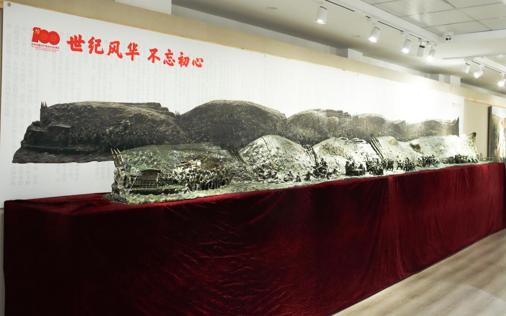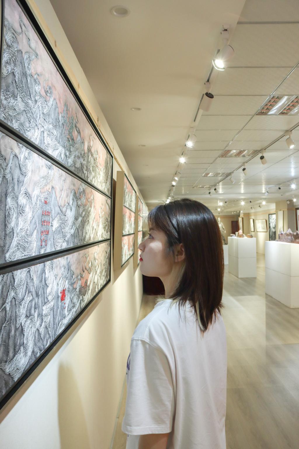站于画前,注视各画,细细品味,在心中歌颂百年党史。