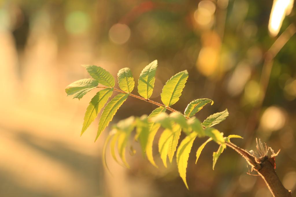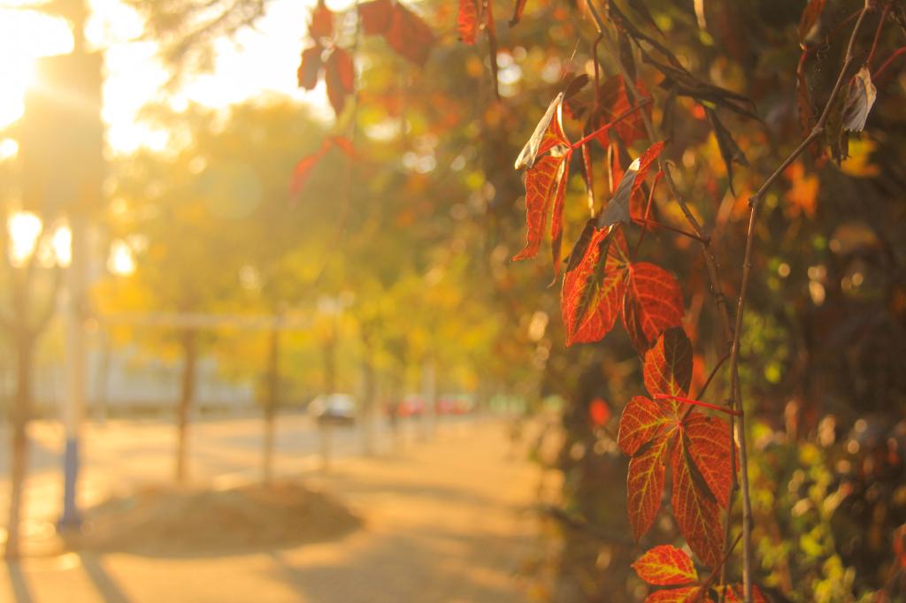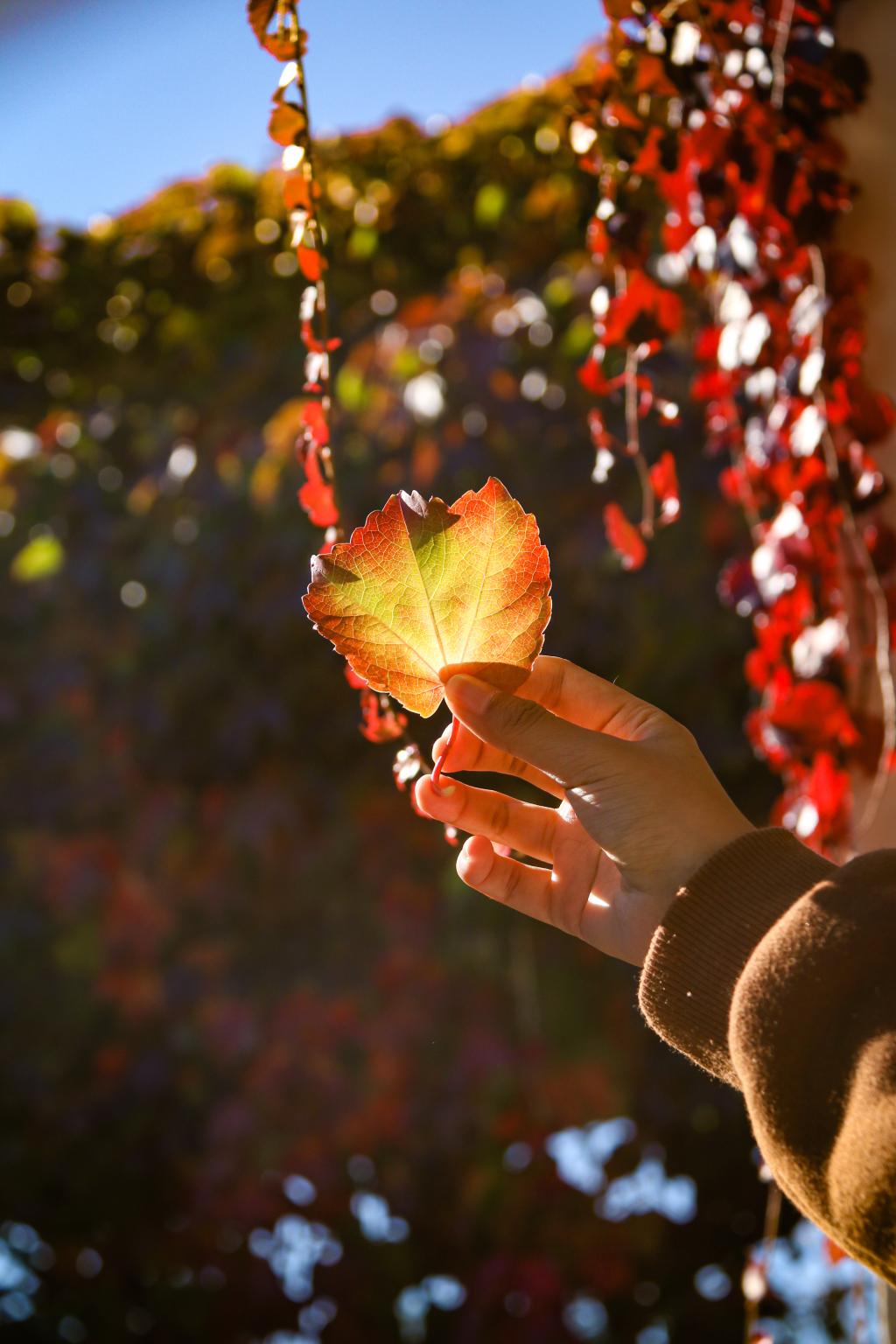 秋用丹砂把树叶尽数涂抹,引诱你捡起对着残阳映照 (李忻桐摄)