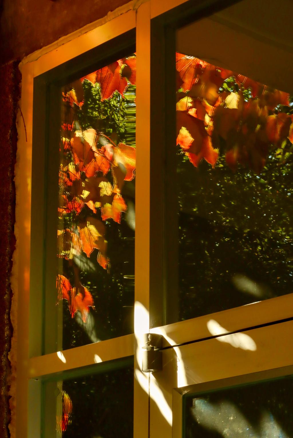 泛红的叶倚着墙切碎了日光,只余细小的光斑将窗照亮 (林世新摄)