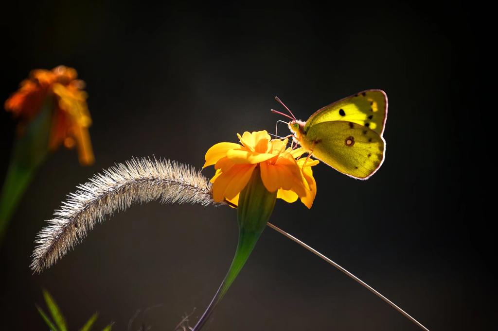 驻足停留着的,是迟来的蝴蝶,还是晚开的花朵?(蔡巧怡摄)