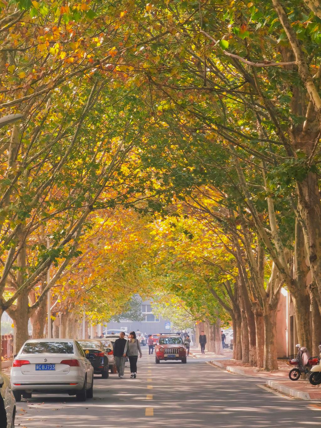 泛黄的叶片,伴着秋风渐渐飘落,渲染了校园的道路,亦温暖了过路人 (张晓未摄)