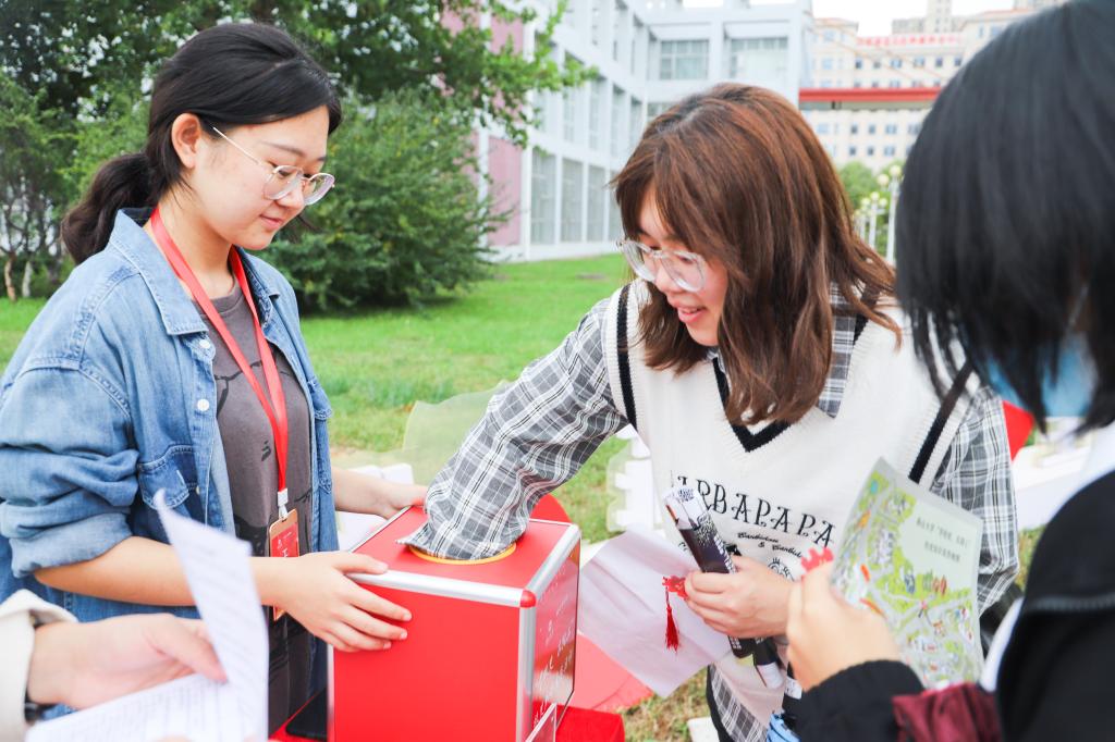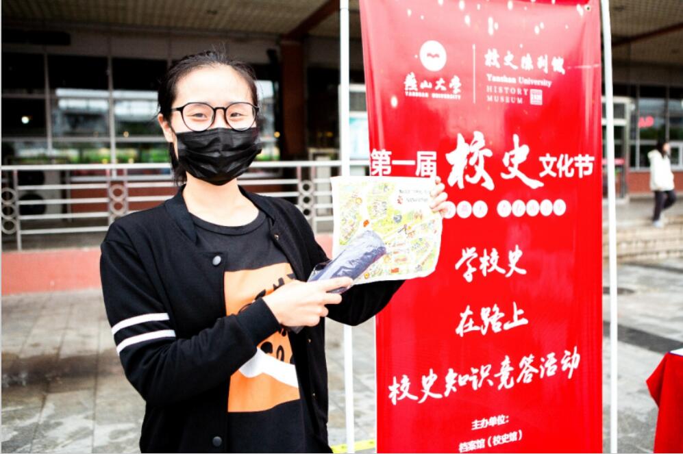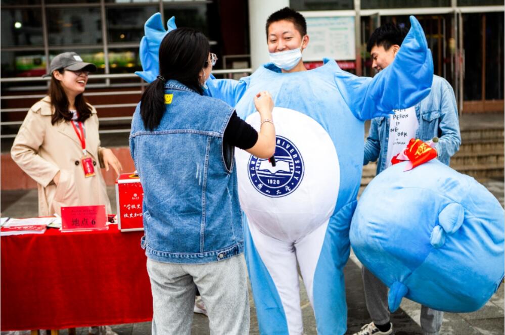 面带微笑,化身燕宝,伴你一路学校史(伊春光摄)