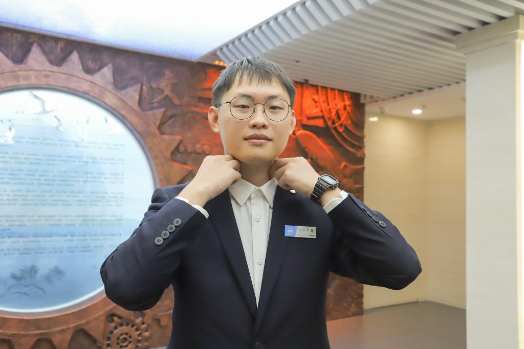 整理衣领,昂首挺胸,今天我当校史讲解员(卜腾跃摄)