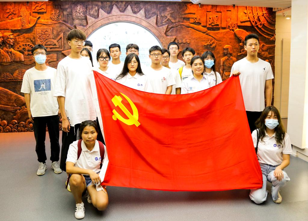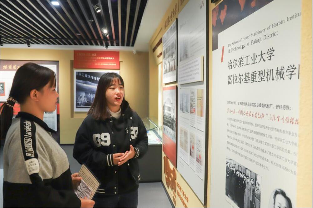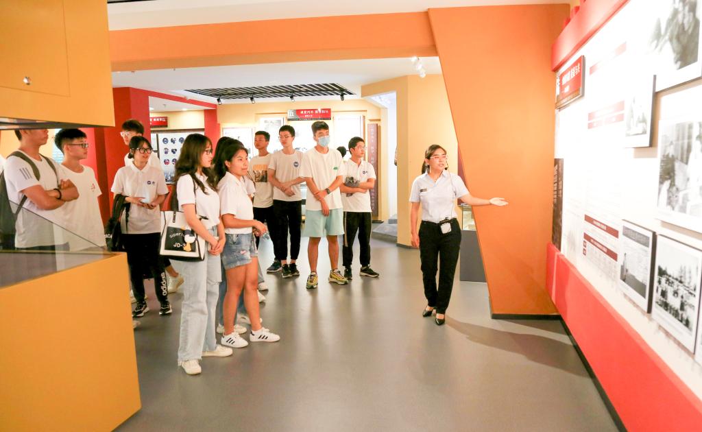 2021级新生在校史陈列馆里进行校史教育“开学第一课”(伊春光摄)