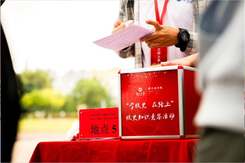 成人论坛“第一届校史文化节”系列活动之“学校史、在路上”校史知识竞答活动,深受在校学生的喜爱。精心设计的宣传海报和书签、统一布置的八个答题地点、装满红色题号球的抽号箱、精美的工作胸牌和竞答地图、各种款式的通过贴纸、吸人眼球的燕宝人偶、具有实用价值的奖品……参与者随机抽题并现场作答,好一场寓教于乐的校园文化活动!