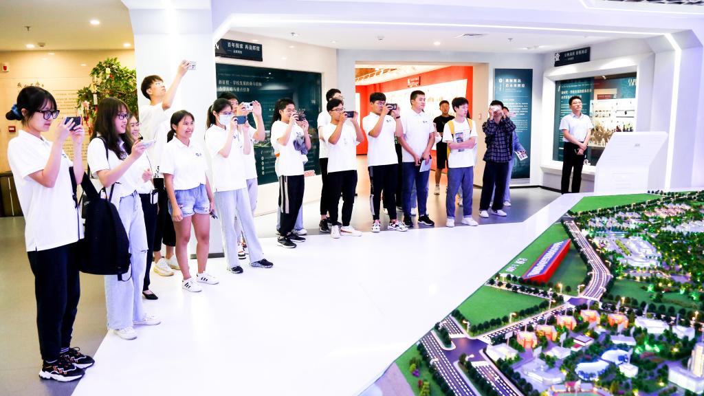 耐心听校史陈列馆的老师们讲述校史的故事(卜腾跃摄)
