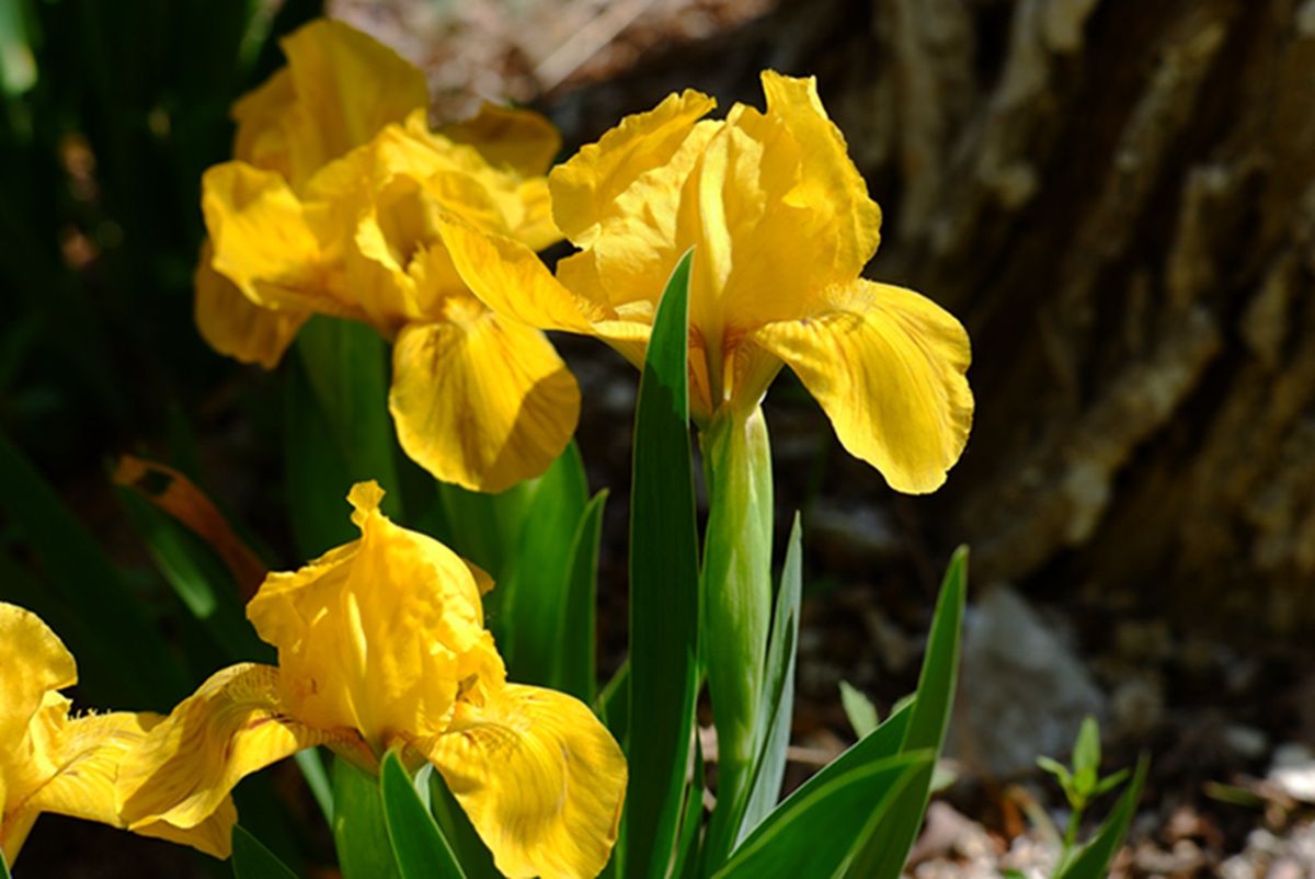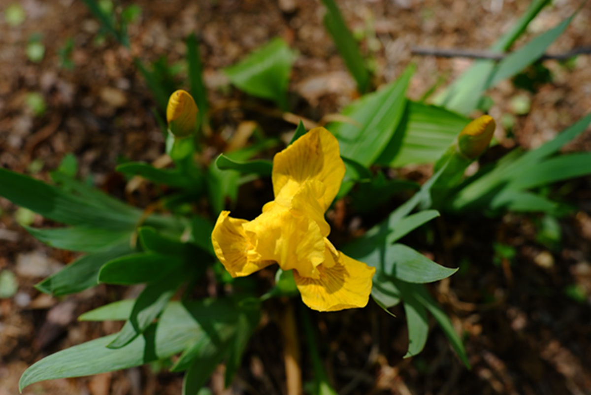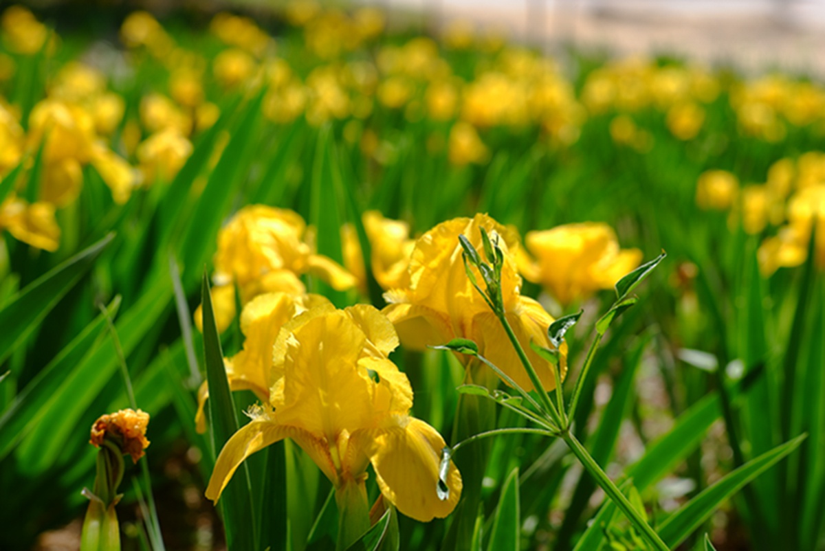 黄菖蒲是多年生湿生或挺水宿根草本植物,植株高大,根茎短粗。叶子茂密,基生,绿色,长剑形,长60-100厘米,中肋明显,并具横向网状脉 。花茎稍高出于叶,垂瓣上部长椭圆形,基部近等宽,具褐色斑纹或无,旗瓣淡黄色,花径8厘米。