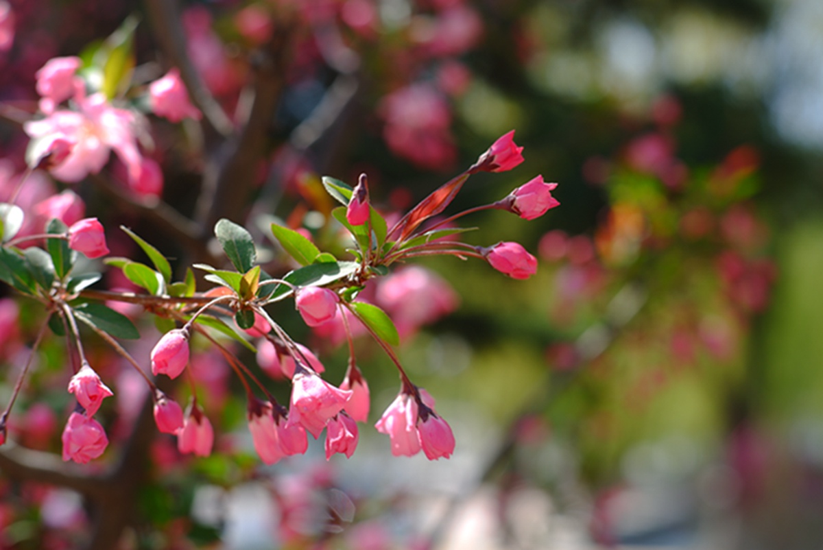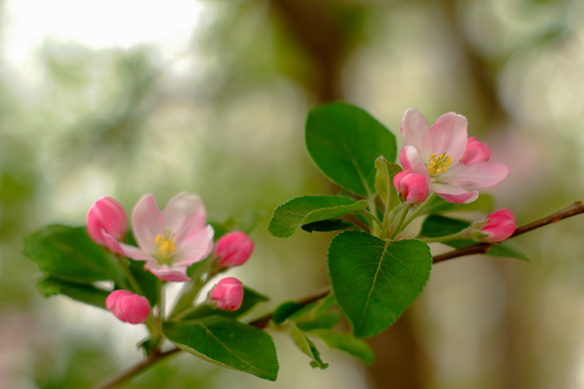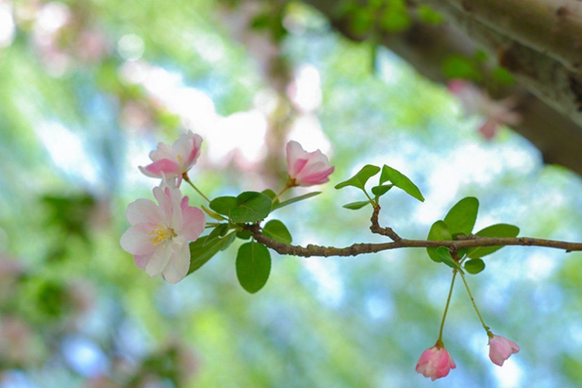 西府海棠为蔷薇科苹果属的植物,小乔木,高达2.5-5米,树枝直立性强,为中国的特有植物。