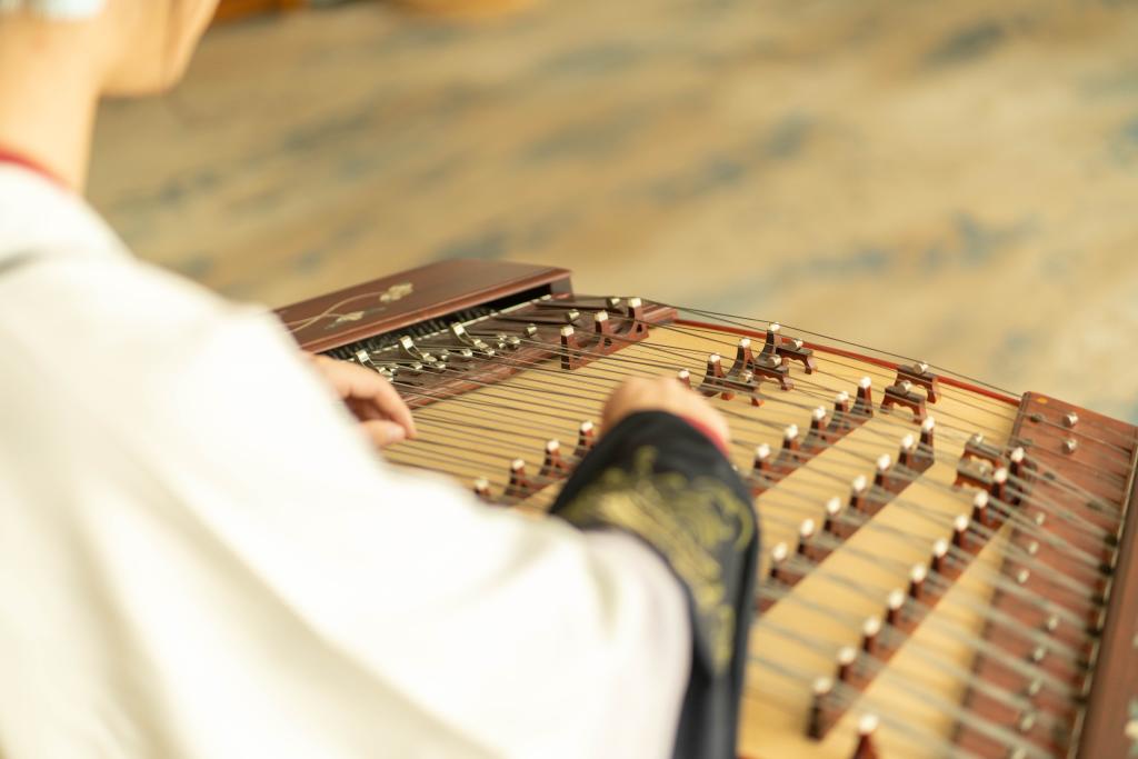 枝头曳叶盈,透光绘影,鸟鹊音嘤咛。满园芬芳,欲采几许遗远方。红叶展了醉颜,倾语共话秋闲。古韵琴音,一声入耳,万事离心。不怕夕阳迟暮,青色石板路旁,看花开花落水波不惊。