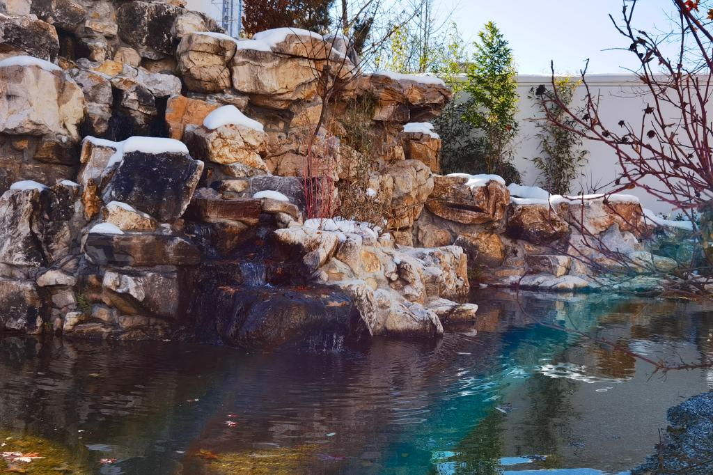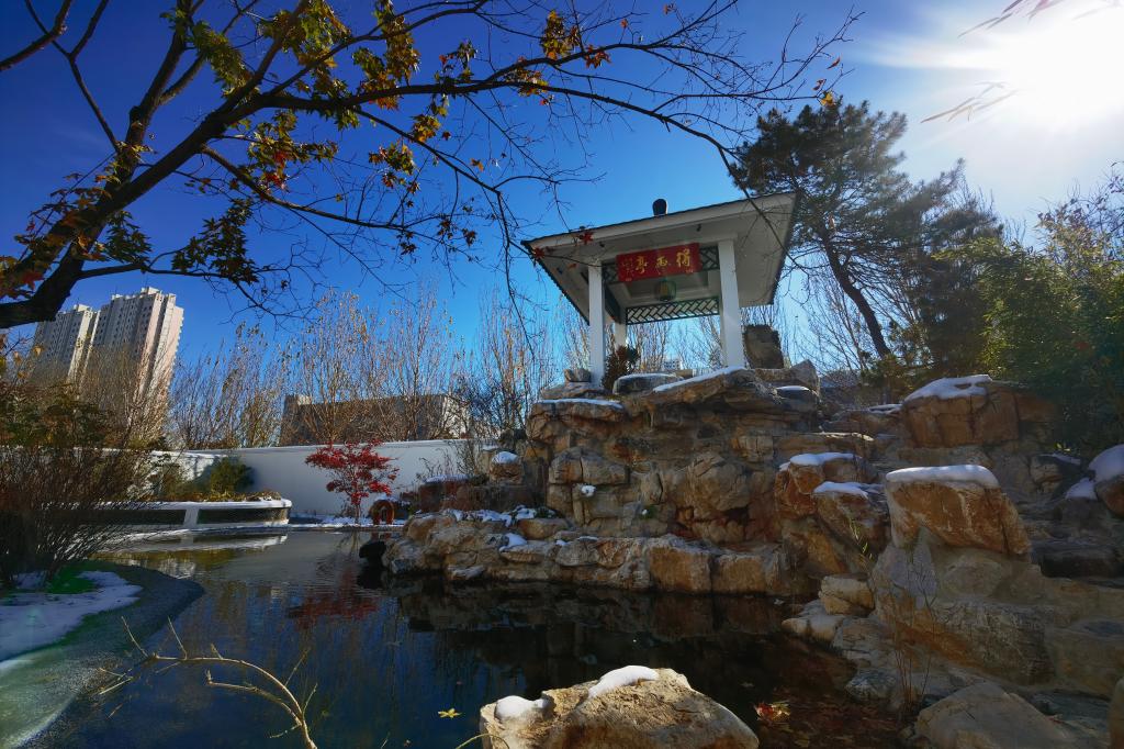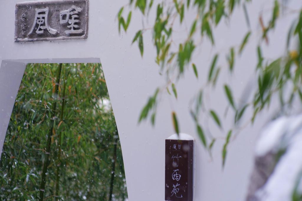 窗外飘洒素雪,纯净清冷。室内围炉而坐,茶香四溢。凭栏观树,赏雪拥竹,近看风雨。雪花点点,将这片天地渲染的洁白灵动。纤尘不染,雪落无息,听其诉说着真意,从容而静谧。待到天晴,枝头柿子与顶雪石榴相映成趣,听落雪轻敲竹声,看闲庭粉妆玉琢。