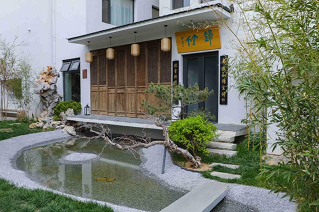 闲庭的美,不是一座孤立的建筑物的美,不是一片孤立的风景的美,而是一份寻觅的美。未近园林先有情,满园国风,满眼竹色,竹栏围舍,白沙点缀,让人感受远离喧嚣的僻静清幽,仿佛在找一位故人,寻一场旧梦。