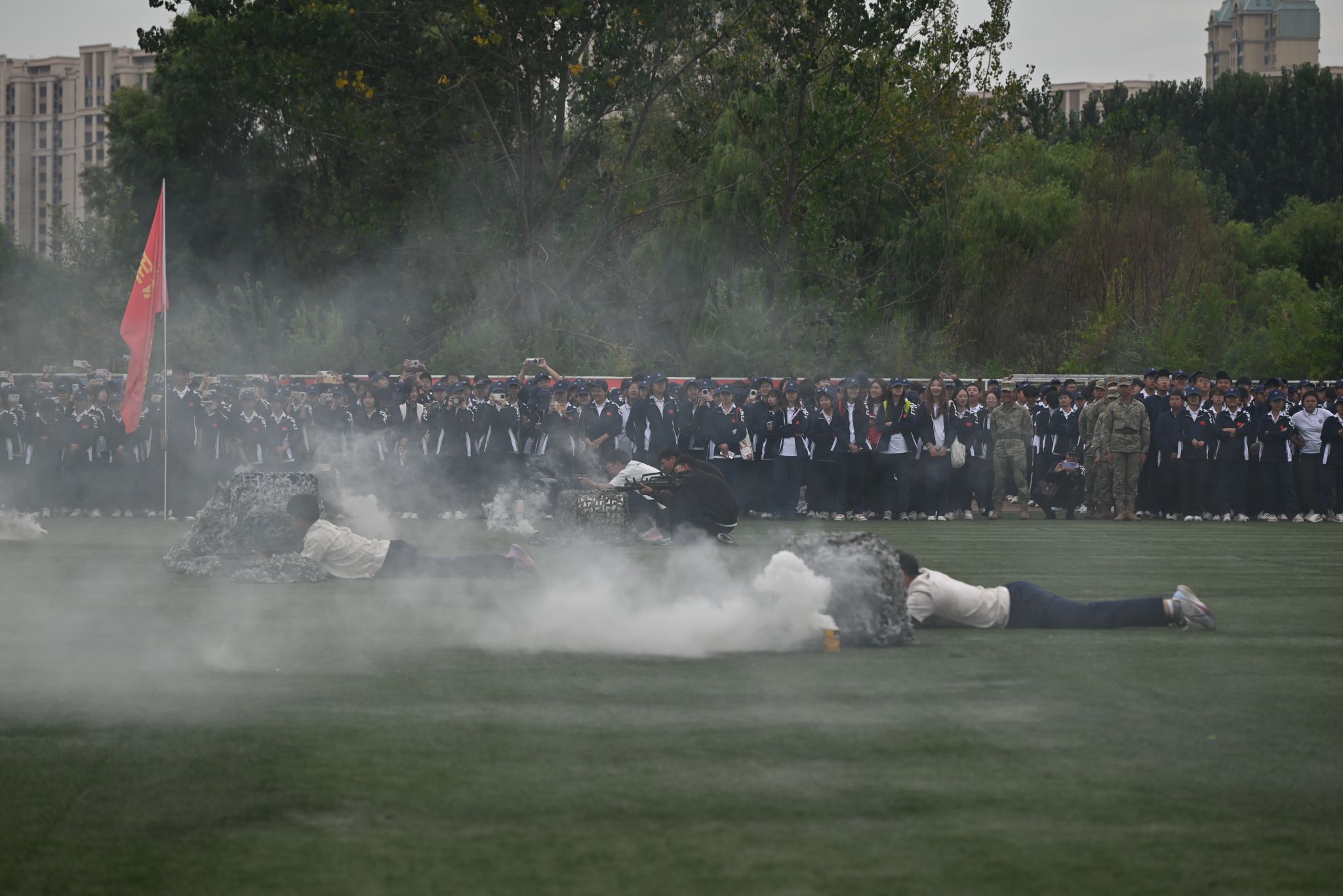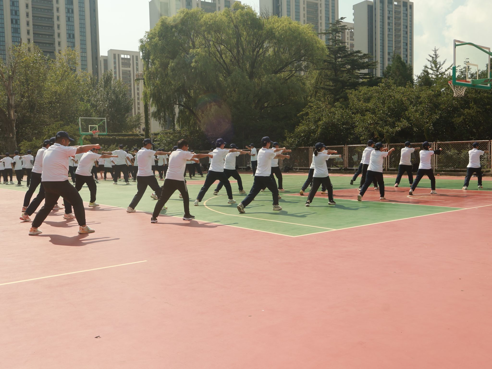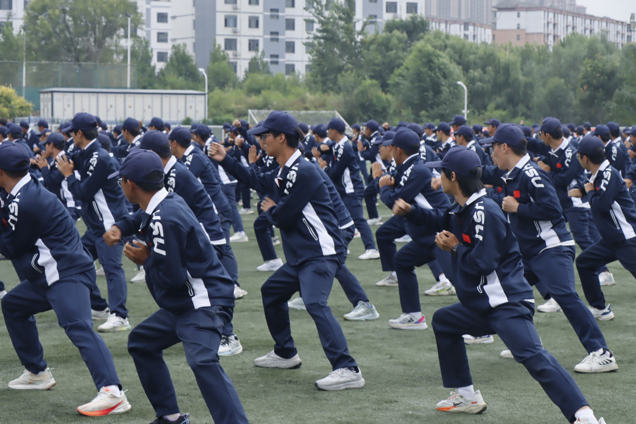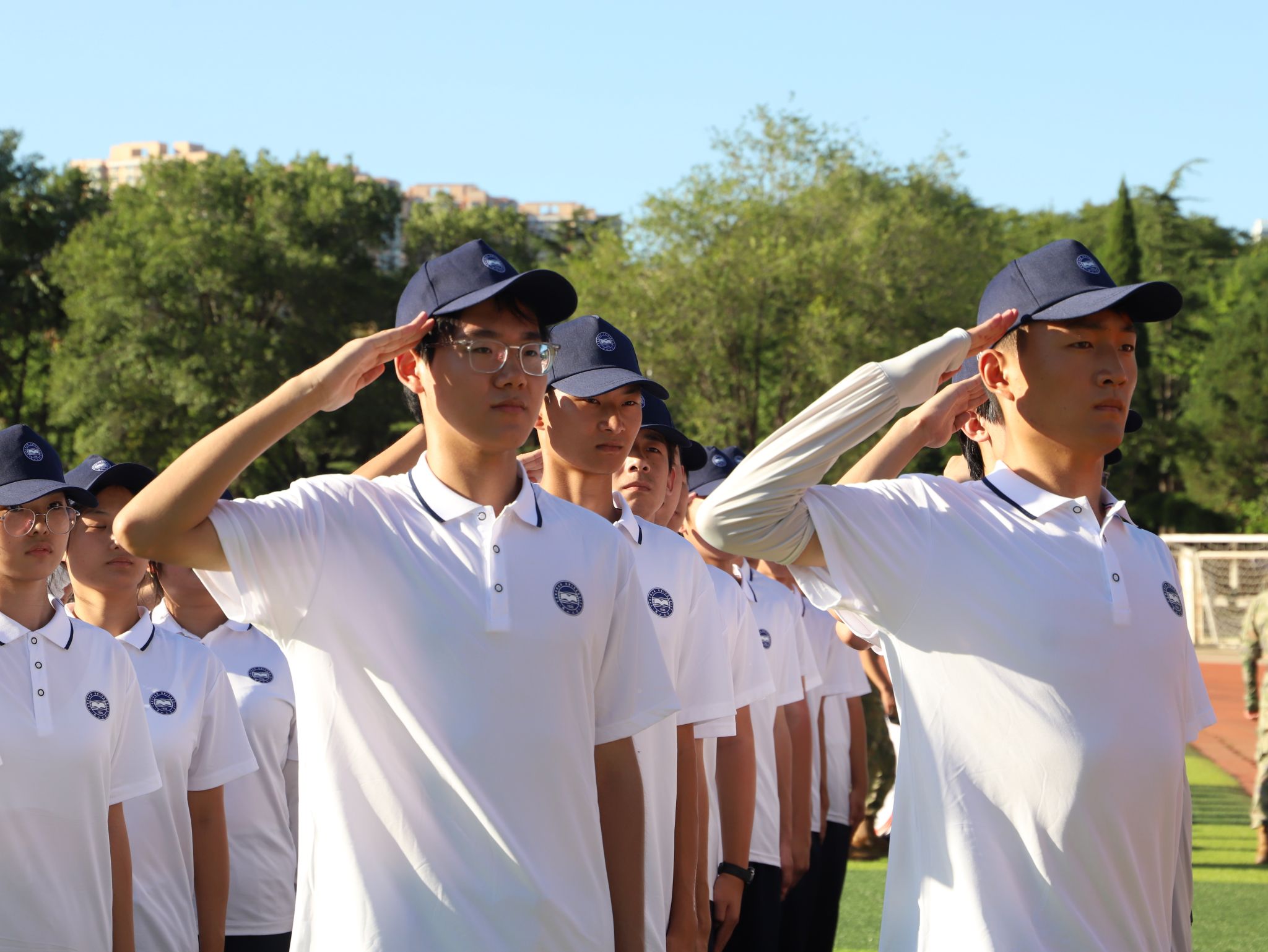 同学们站军姿时挺拔的身姿和坚定的眼神
