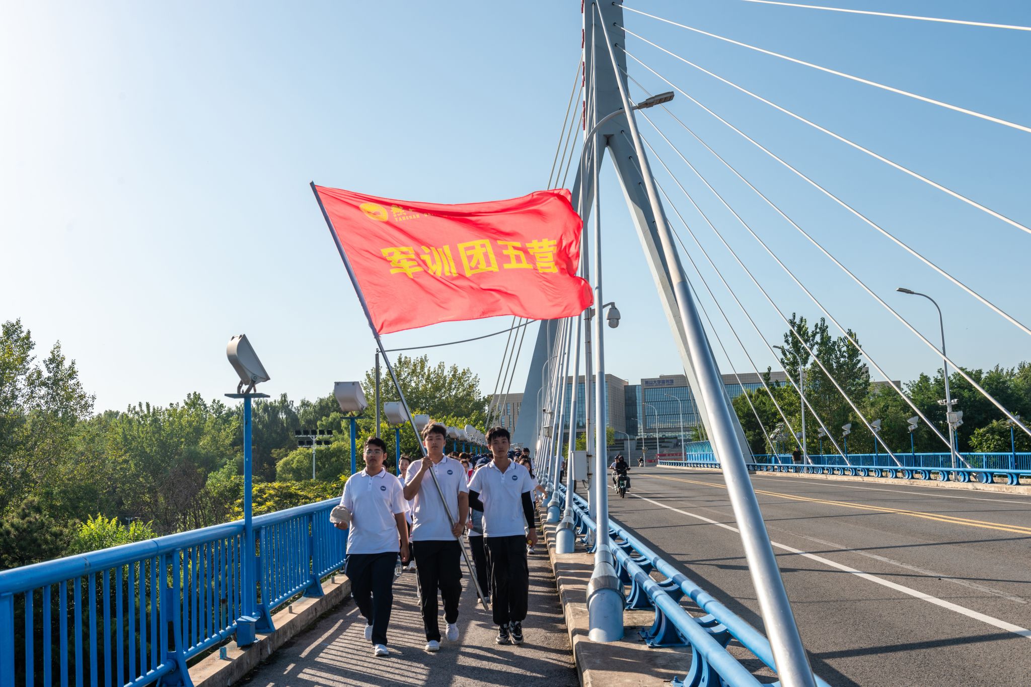 拉练途中 尖刀班的同学手持国旗 傲然屹立